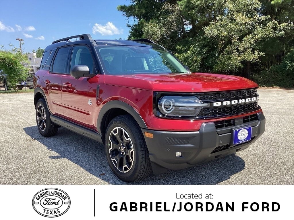 This 2025 Ford Bronco Sport Outer Banks in Ruby Red Metallic Tinted Clearcoat comes with the following features: 1.5L EcoBoost 8-Speed Automatic 4WD Outer Banks Tech Package+ (B&O Sound System by Bang & Olufsen, Connected Navigation, and HD Radio), 360-Degree Camera w/Trail & Split View, 4-Wheel Disc Brakes, 6 Speakers, ABS brakes, Air Conditioning, Alloy wheels, AM/FM radio: SiriusXM, AM/FM Stereo, Auto High-beam Headlights, Auto-dimming Rear-View mirror, Automatic temperature control, Brake assist, Compass, Delay-off headlights, Driver door bin, Driver vanity mirror, Dual front impact airbags, Dual front side impact airbags, Electronic Stability Control, Emergency communication system: SYNC 4 911 Assist, Four wheel independent suspension, Front anti-roll bar, Front Bucket Seats, Front Center Armrest, Front Driver/Passenger Seat Back Map Pockets, Front dual zone A/C, Front fog lights, Front License Plate Bracket, Front Parking Sensors, Front reading lights, Fully automatic headlights, Garage door transmitter, Heated door mirrors, Heated front seats, Heated steering wheel, Illuminated entry, Knee airbag, Low tire pressure warning, Memory seat, Occupant sensing airbag, Outside temperature display, Overhead airbag, Overhead console, Panic alarm, Passenger door bin, Passenger vanity mirror, Power door mirrors, Power driver seat, Power Moonroof, Power passenger seat, Power steering, Power windows, Premium Trimmed Front Bucket Seats w/Ebony/Roast, Radio data system, Rain sensing wipers, Rear anti-roll bar, Rear Parking Sensors, Rear reading lights, Rear seat center armrest, Rear window defroster, Rear window wiper, Remote keyless entry, Reverse Brake Assist, Security system, SiriusXM, Speed control, Speed-sensing steering, Speed-Sensitive Wipers, Split folding rear seat, Steering wheel mounted audio controls, SYNC 4 w/Enhanced Voice Recognition, Tachometer, Telescoping steering wheel, Tilt steering wheel, Traction control, Trip computer, Variably intermittent wipers, and Wheels: 18" Ebony Black-Painted Aluminum.