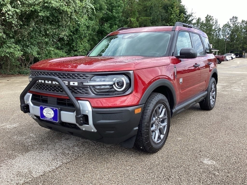 New Price! This 2025 Ford Bronco Sport Big Bend in Ruby Red Metallic Tinted Clearcoat comes with the following features: 1.5L EcoBoost 8-Speed Automatic 4WD Black Diamond Off-Road Package (110V/400W AC Power Outlet, 2nd Row Carpeted Seatback, Auxiliary Switches & Wiring, Brush Guard, Cargo Management System (Shelf/Divider/Table), Cargo Mat, Class II Trailer Tow Pack w/Trailer Sway Control, Fender Tie Downs, Front & Rear Black Bumpers, Interior Grab Handle, Recovery Hooks, and Wheels: 17" Carbonized Gray Painted Aluminum), 4-Wheel Disc Brakes, 6 Speakers, ABS brakes, Air Conditioning, Alloy wheels, AM/FM radio: SiriusXM, AM/FM Stereo, Auto High-beam Headlights, Automatic temperature control, Brake assist, Cloth w/Easy-to-Clean Front Bucket Seats, Compass, Delay-off headlights, Driver door bin, Driver vanity mirror, Dual front impact airbags, Dual front side impact airbags, Electronic Stability Control, Emergency communication system: SYNC 4 911 Assist, Four wheel independent suspension, Front anti-roll bar, Front Bucket Seats, Front Center Armrest, Front License Plate Bracket, Front reading lights, Fully automatic headlights, Heated door mirrors, Illuminated entry, Knee airbag, Low tire pressure warning, Occupant sensing airbag, Outside temperature display, Overhead airbag, Overhead console, Panic alarm, Passenger door bin, Passenger vanity mirror, Power door mirrors, Power steering, Power windows, Radio data system, Rear anti-roll bar, Rear Parking Sensors, Rear reading lights, Rear seat center armrest, Rear window defroster, Rear window wiper, Remote keyless entry, Security system, SiriusXM, Speed control, Speed-sensing steering, Speed-Sensitive Wipers, Split folding rear seat, Steering wheel mounted audio controls, SYNC 4 w/Enhanced Voice Recognition, Tachometer, Telescoping steering wheel, Tilt steering wheel, Traction control, Trip computer, Variably intermittent wipers, and Wheels: 17" Carbonized Gray-Painted Aluminum.