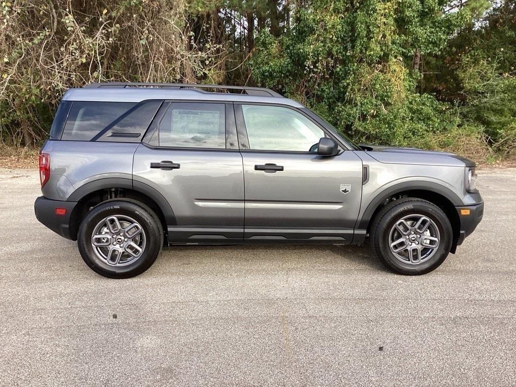 This 2025 Ford Bronco Sport Big Bend in Carbonized Gray Metallic comes with the following features: 1.5L EcoBoost 8-Speed Automatic 4WD Convenience Package (Front Driver/Passenger Seat Back Map Pockets, Heated 8-Way Power Driver's Seat, LED Fog Lamps, Premium Wrapped Steering Wheel, and Universal Garage Door Opener (UGDO)), 4-Wheel Disc Brakes, 6 Speakers, ABS brakes, Air Conditioning, Alloy wheels, AM/FM radio: SiriusXM, AM/FM Stereo, Auto High-beam Headlights, Automatic temperature control, Brake assist, Cloth w/Easy-to-Clean Front Bucket Seats, Compass, Delay-off headlights, Driver door bin, Driver vanity mirror, Dual front impact airbags, Dual front side impact airbags, Electronic Stability Control, Emergency communication system: SYNC 4 911 Assist, Four wheel independent suspension, Front anti-roll bar, Front Bucket Seats, Front Center Armrest, Front License Plate Bracket, Front reading lights, Fully automatic headlights, Heated door mirrors, Illuminated entry, Knee airbag, Low tire pressure warning, Occupant sensing airbag, Outside temperature display, Overhead airbag, Overhead console, Panic alarm, Passenger door bin, Passenger vanity mirror, Power door mirrors, Power steering, Power windows, Radio data system, Rear anti-roll bar, Rear Parking Sensors, Rear reading lights, Rear seat center armrest, Rear window defroster, Rear window wiper, Remote keyless entry, Security system, SiriusXM, Speed control, Speed-sensing steering, Speed-Sensitive Wipers, Split folding rear seat, Steering wheel mounted audio controls, SYNC 4 w/Enhanced Voice Recognition, Tachometer, Telescoping steering wheel, Tilt steering wheel, Traction control, Trip computer, Variably intermittent wipers, and Wheels: 17" Carbonized Gray-Painted Aluminum.