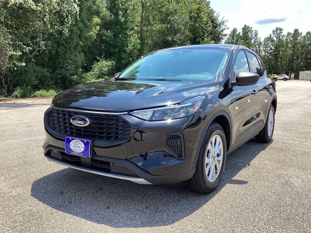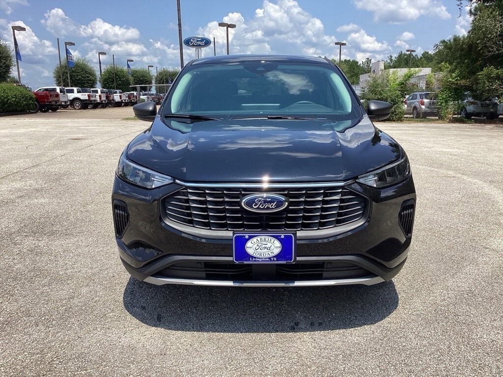This 2025 Ford Escape Active in Agate Black Metallic comes with the following features: 1.5L EcoBoost 8-Speed Automatic FWD Equipment Group 200A, Tech Pack #1 (Adaptive Cruise Control w/Stop-and-Go, Connected Navigation, Ford Co-Pilot360 Assist+, Intersection Assist, Predictive Speed Assist, Rear Parking Sensor, Rear-View Camera, and SYNC 4 w/Enhanced Voice Recognition), 3.81 Axle Ratio, 4-Wheel Disc Brakes, 6 Speakers, ABS brakes, Air Conditioning, Alloy wheels, AM/FM radio: SiriusXM, AM/FM Stereo, Auto High-beam Headlights, Automatic temperature control, Brake assist, Bumpers: body-color, Compass, Delay-off headlights, Driver door bin, Driver vanity mirror, Dual front impact airbags, Dual front side impact airbags, Electronic Stability Control, Emergency communication system: SYNC 4 911 Assist, FordPass Connect, Four wheel independent suspension, Front anti-roll bar, Front Bucket Seats, Front Center Armrest, Front dual zone A/C, Front License Plate Bracket, Front reading lights, Fully automatic headlights, Illuminated entry, Knee airbag, Low tire pressure warning, Occupant sensing airbag, Outside temperature display, Overhead airbag, Overhead console, Panic alarm, Passenger door bin, Passenger vanity mirror, Power door mirrors, Power steering, Power windows, Radio data system, Rear anti-roll bar, Rear reading lights, Rear seat center armrest, Rear window defroster, Rear window wiper, Remote keyless entry, Speed control, Speed-sensing steering, Speed-Sensitive Wipers, Split folding rear seat, Spoiler, Steering wheel mounted audio controls, SYNC 4, Tachometer, Telescoping steering wheel, Tilt steering wheel, Traction control, Trip computer, Unique Cloth Front Bucket Seats, Variably intermittent wipers, and Wheels: 17" Shadow Silver-Painted Aluminum.