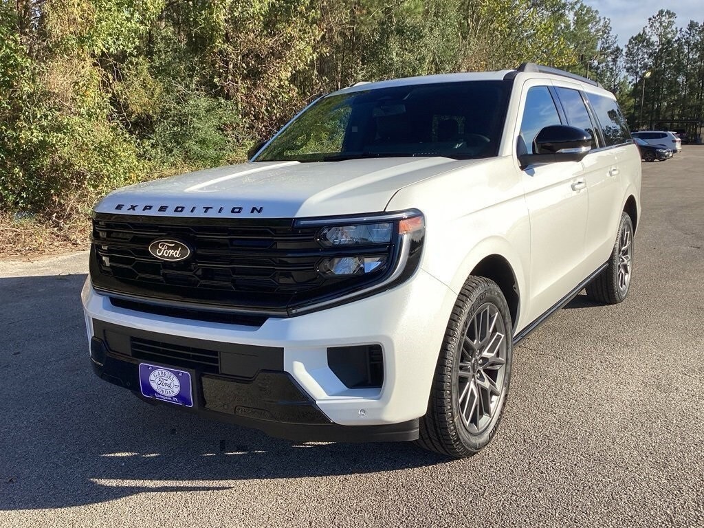 This 2025 Ford Expedition Max Platinum in Star White Metallic Tri-Coat comes with the following features: 3.5L V6 10-Speed Automatic 4WD Driver's Package (Continuous Control Damping Suspension, Radio: B&O Unleashed Sound System by Bang & Olufsen, and SiriusXM w/360L), Equipment Group 600A Standard Package (2nd Row Power-Folding Captain's Chairs), Stealth Appearance Package (Black Belt Molding, Black Expedition Lettering On Hood, Black Headlamp Bezel w/Ebony Trim Applique, Black Platinum Badge On Tailgate, Black Roof Rails, Carbon Black Front Bumper/Fascia, Engine Sound Enhancer, Rear Side Windows Laminated Glass, and Signature Grille Lighting), Stealth Performance Package (High Flow Exhaust System, Red Brake Calipers, and Wheels: 22" Magnetite Painted Aluminum), 10 Speakers, 3.73 Axle Ratio, 3rd row seats: split-bench, 4-Wheel Disc Brakes, ABS brakes, Adjustable pedals, Air Conditioning, Alloy wheels, AM/FM radio: SiriusXM with 360L, Apple CarPlay/Android Auto, Auto High-beam Headlights, Auto-dimming door mirrors, Auto-dimming Rear-View mirror, Automatic temperature control, Brake assist, Bumpers: body-color, Compass, Delay-off headlights, Driver door bin, Driver vanity mirror, Dual front impact airbags, Dual front side impact airbags, Electronic Stability Control, Emergency communication system: 911 Assist, Exterior Parking Camera Rear, Four wheel independent suspension, Front anti-roll bar, Front Bucket Seats, Front Center Armrest, Front dual zone A/C, Front License Plate Bracket, Front reading lights, Fully automatic headlights, Garage door transmitter, Genuine wood dashboard insert, Genuine wood door panel insert, Heated & Ventilated Leather Front Captain's Chairs, Heated door mirrors, Heated front seats, Heated rear seats, Heated steering wheel, Illuminated entry, Leather steering wheel, Low tire pressure warning, Memory seat, Navigation System, Occupant sensing airbag, Outside temperature display, Overhead airbag, Overhead console, Panic alarm, Passenger door bin, Passenger vanity mirror, Pedal memory, Power door mirrors, Power driver seat, Power moonroof: Vista Roof, Power passenger seat, Power steering, Power windows, Radio data system, Radio: B&O Sound System by Bang & Olufsen, Rain sensing wipers, Rear air conditioning, Rear anti-roll bar, Rear reading lights, Rear window defroster, Rear window wiper, Reclining 3rd row seat, Remote keyless entry, Security system, Speed control, Speed-sensing steering, Speed-Sensitive Wipers, Split folding rear seat, Spoiler, Steering wheel memory, Steering wheel mounted audio controls, Tachometer, Telescoping steering wheel, Tilt steering wheel, Traction control, Trip computer, Turn signal indicator mirrors, Variably intermittent wipers, Ventilated front seats, Voltmeter, and Wheels: 20" Ebony Bright Machined Aluminum. Price includes: $1000 - Final Days Mega Bonus Cash. Exp. 01/02/2026
