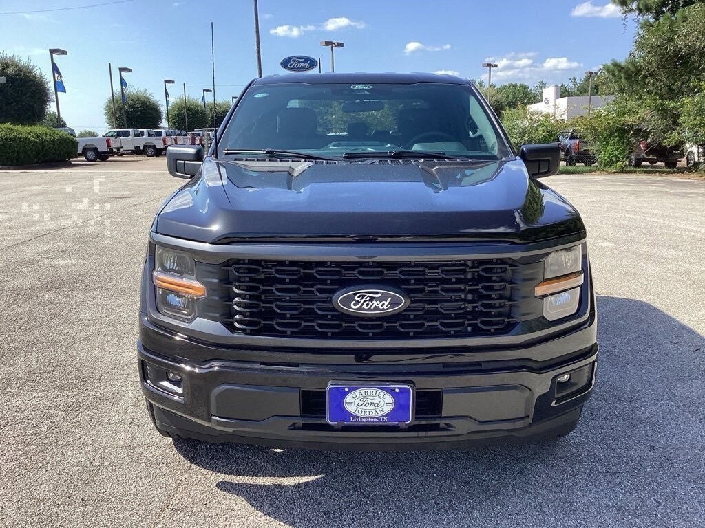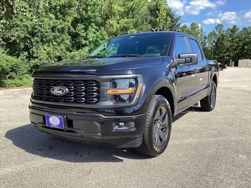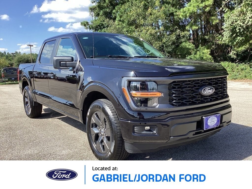 This 2025 Ford F-150 STX in Agate Black Metallic comes with the following features: 2.7L V6 EcoBoost 10-Speed Automatic RWD Equipment Group 200A Mid (LED Fog Lamps w/LED Cornering Lamp and Wheels: 20" Dark Gray w/Machined Aluminum), GVWR: 6,426 lbs Payload Package, 3.55 Axle Ratio, 4-Wheel Disc Brakes, 6 Speakers, ABS brakes, Air Conditioning, Alloy wheels, AM/FM radio: SiriusXM with 360L, Auto High-beam Headlights, Brake assist, Bumpers: body-color, Compass, Delay-off headlights, Driver door bin, Dual front impact airbags, Dual front side impact airbags, Electronic Stability Control, Emergency communication system: SYNC 4 911 Assist, Front anti-roll bar, Front Bucket Seats, Front Center Armrest, Front License Plate Bracket, Front reading lights, Front wheel independent suspension, Fully automatic headlights, Heated door mirrors, Illuminated entry, Low tire pressure warning, Occupant sensing airbag, Outside temperature display, Overhead airbag, Overhead console, Panic alarm, Passenger door bin, Passenger vanity mirror, Power door mirrors, Power steering, Power windows, Radio data system, Radio: AM/FM Stereo w/SiriusXM 360L, Rear Parking Sensors, Rear step bumper, Rear window defroster, Remote keyless entry, Security system, Speed control, Split folding rear seat, Steering wheel mounted audio controls, SYNC 4 w/Enhanced Voice Recognition, Tachometer, Telescoping steering wheel, Tilt steering wheel, Traction control, Trip computer, Variably intermittent wipers, Voltmeter, and Wheels: 18" Gloss Black.