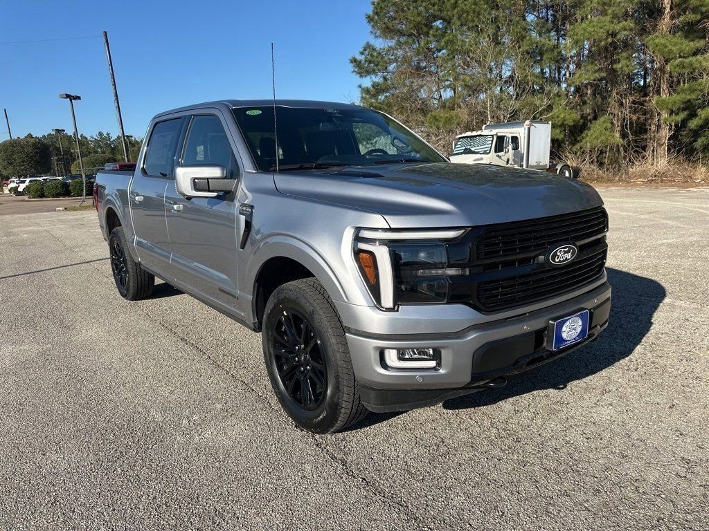 This 2025 Ford F-150 Platinum in Iconic Silver Metallic comes with the following features: 3.5L PowerBoost Full-Hybrid V6 10-Speed Automatic 4WD 3.5L PowerBoost Full-Hybrid V6 and 4WD Equipment Group 702A High (Heads-Up Display, Radio: B&O Unleashed Sound System by Bang & Olufsen, and Twin Panel Moonroof), FX4 Off-Road Package (4x4 FX4 Off-Road Bodyside Decal, Hill Descent Control, Monotube Rear Shocks, Off-Road Tuned Front Shock Absorbers, and Rock Crawl Mode), 3.5L PowerBoost Full-Hybrid V6, 4WD, 4-Wheel Disc Brakes, 8 Speakers, ABS brakes, Adjustable pedals, Air Conditioning, Alloy wheels, Auto High-beam Headlights, Auto tilt-away steering wheel, Auto-dimming door mirrors, Auto-dimming Rear-View mirror, Automatic temperature control, Brake assist, Bumpers: body-color, Compass, Delay-off headlights, Driver door bin, Driver vanity mirror, Dual front impact airbags, Dual front side impact airbags, Electronic Locking w/3.55 Axle Ratio, Electronic Stability Control, Emergency communication system: SYNC 4 911 Assist, Front anti-roll bar, Front Bucket Seats, Front Center Armrest, Front dual zone A/C, Front fog lights, Front License Plate Bracket, Front reading lights, Front wheel independent suspension, Fully automatic headlights, Garage door transmitter, Heated door mirrors, Heated front seats, Heated rear seats, Heated steering wheel, Illuminated entry, Leather steering wheel, Low tire pressure warning, Memory seat, Navigation system: Connected Navigation, Occupant sensing airbag, Outside temperature display, Overhead airbag, Overhead console, Panic alarm, Passenger door bin, Passenger vanity mirror, Pedal memory, Power door mirrors, Power driver seat, Power passenger seat, Power steering, Power windows, Radio data system, Radio: B&O Sound System by Bang & Olufsen, Rain sensing wipers, Rear reading lights, Rear seat center armrest, Rear step bumper, Rear window defroster, Remote keyless entry, Security system, Speed control, Split folding rear seat, Steering wheel memory, Steering wheel mounted audio controls, SYNC 4 w/Enhanced Voice Recognition, Tachometer, Telescoping steering wheel, Tilt steering wheel, Tough Bed Spray-In Bedliner, Traction control, Tray Style Floor Liner, Trip computer, Turn signal indicator mirrors, Unique Multi-Contour Leather Bucket Seats, Variably intermittent wipers, Ventilated front seats, Voltmeter, and Wheels: 20" Painted Gloss Ebony Black. Price includes: $1000 - Retail Bonus Cash. Exp. 03/31/2026 $1000 - Truck Month Retail Bonus Cash. Exp. 03/31/2026 $2000 - Retail Customer Cash. Exp. 03/31/2026