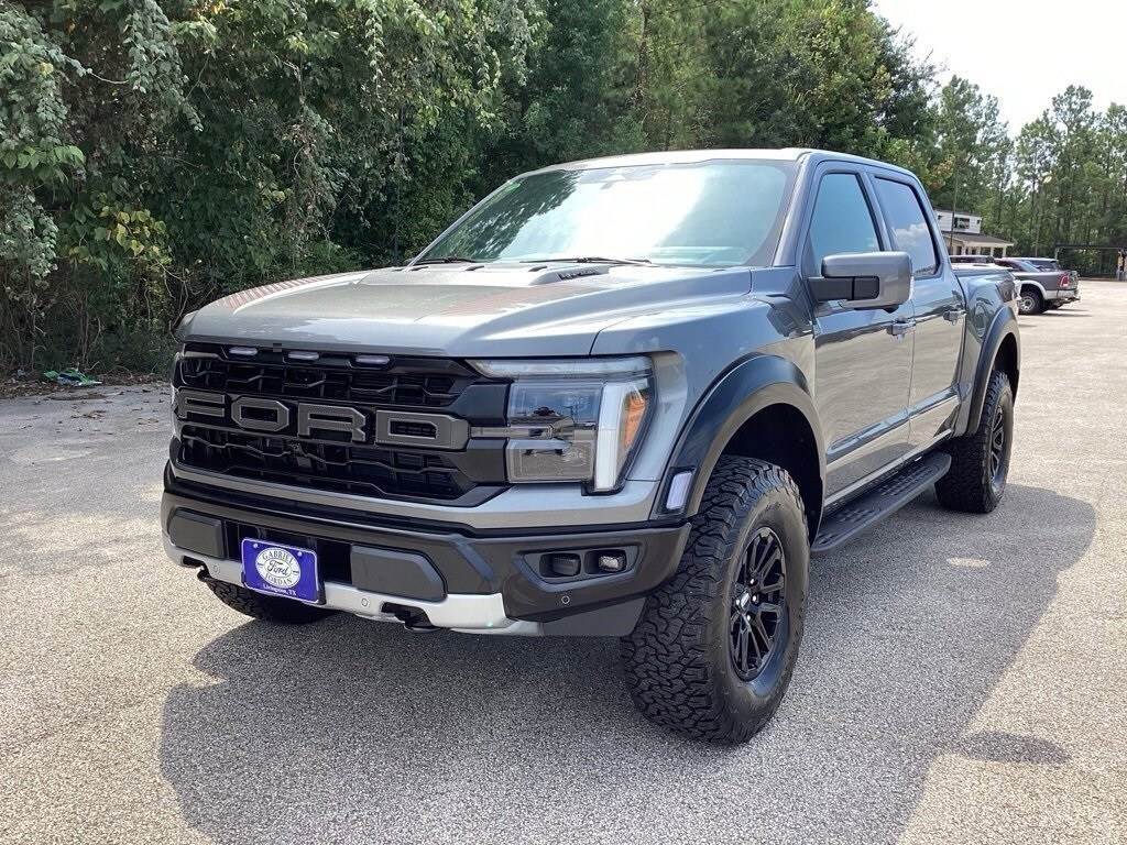 This 2025 Ford F-150 Raptor in Carbonized Gray Metallic comes with the following features: 3.5L V6 EcoBoost 10-Speed Automatic 4WD 4WD Equipment Group 801A Standard, 4WD, 14 Speakers, 17" Cast Aluminum Wheels, 4-Wheel Disc Brakes, ABS brakes, Adjustable pedals, Air Conditioning, Alloy wheels, AM/FM radio: SiriusXM with 360L, Auto High-beam Headlights, Auto tilt-away steering wheel, Auto-dimming door mirrors, Auto-dimming Rear-View mirror, Automatic temperature control, Brake assist, Bumpers: body-color, Compass, Delay-off headlights, Driver door bin, Driver vanity mirror, Dual front impact airbags, Dual front side impact airbags, Electronic Locking w/4.10 Axle Ratio, Electronic Stability Control, Emergency communication system: SYNC 4 911 Assist, Front anti-roll bar, Front Bucket Seats, Front Center Armrest, Front dual zone A/C, Front fog lights, Front License Plate Bracket, Front reading lights, Front wheel independent suspension, Fully automatic headlights, Garage door transmitter, Heads-Up Display, Heated door mirrors, Heated front seats, Heated rear seats, Heated steering wheel, Illuminated entry, Lane Departure Warning System, Leather steering wheel, Low tire pressure warning, Memory seat, Navigation system: Connected Navigation, Occupant sensing airbag, Outside temperature display, Overhead airbag, Overhead console, Panic alarm, Passenger door bin, Passenger vanity mirror, Pedal memory, Power door mirrors, Power driver seat, Power passenger seat, Power steering, Power windows, Radio data system, Radio: B&O Unleashed Sound System by Bang & Olufsen, Rain sensing wipers, Rear reading lights, Rear step bumper, Rear window defroster, Remote keyless entry, Security system, Speed control, Speed-sensing steering, Split folding rear seat, Steering wheel memory, Steering wheel mounted audio controls, SYNC 4 w/Enhanced Voice Recognition, Tachometer, Telescoping steering wheel, Tilt steering wheel, Tough Bed Spray-In Bedliner, Traction control, Trip computer, Turn signal indicator mirrors, Twin Panel Moonroof, Variably intermittent wipers, and Ventilated front seats.