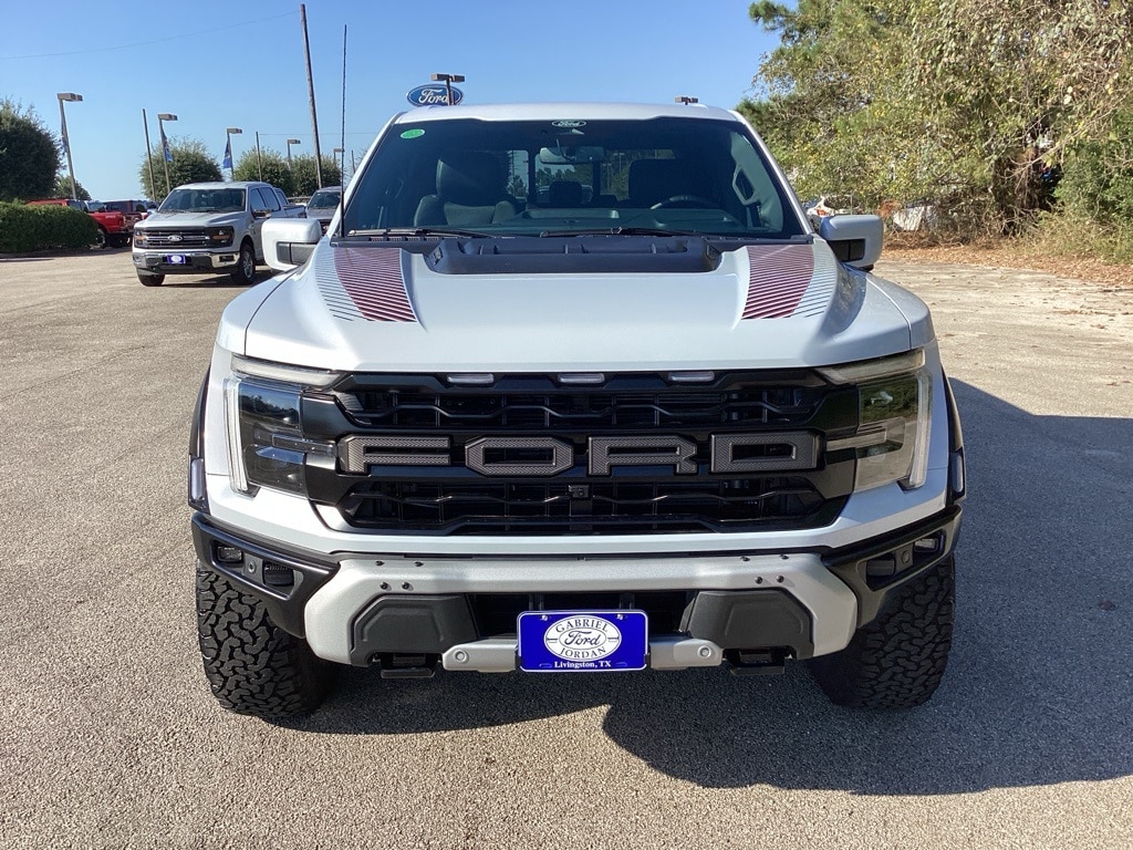 Recent Arrival! This 2025 Ford F-150 Raptor in Space White Metallic comes with the following features: 3.5L V6 EcoBoost 10-Speed Automatic 4WD 4WD Equipment Group 802A Raptor 37 (Carbon Fiber Interior Appliques, Dual Valve Shocks, Modular Front Bumper, RECARO Alcantara Suede Front Seats, and Wheels: Raptor 37 Unique 17" Cast Aluminum), 4WD, 14 Speakers, 17" Cast Aluminum Wheels, 4-Wheel Disc Brakes, ABS brakes, Adjustable pedals, Air Conditioning, Alloy wheels, AM/FM radio: SiriusXM with 360L, Auto High-beam Headlights, Auto tilt-away steering wheel, Auto-dimming door mirrors, Auto-dimming Rear-View mirror, Automatic temperature control, Brake assist, Bumpers: body-color, Compass, Delay-off headlights, Driver door bin, Driver vanity mirror, Dual front impact airbags, Dual front side impact airbags, Electronic Locking w/4.10 Axle Ratio, Electronic Stability Control, Emergency communication system: SYNC 4 911 Assist, Front anti-roll bar, Front Bucket Seats, Front Center Armrest, Front dual zone A/C, Front fog lights, Front License Plate Bracket, Front reading lights, Front wheel independent suspension, Fully automatic headlights, Garage door transmitter, Heads-Up Display, Heated door mirrors, Heated front seats, Heated rear seats, Heated steering wheel, Illuminated entry, Lane Departure Warning System, Leather steering wheel, Leather Trimmed Seats, Low tire pressure warning, Memory seat, Navigation system: Connected Navigation, Occupant sensing airbag, Outside temperature display, Overhead airbag, Overhead console, Panic alarm, Passenger door bin, Passenger vanity mirror, Pedal memory, Power door mirrors, Power driver seat, Power passenger seat, Power steering, Power windows, Radio data system, Radio: B&O Unleashed Sound System by Bang & Olufsen, Rain sensing wipers, Rear reading lights, Rear step bumper, Rear window defroster, Remote keyless entry, Security system, Speed control, Speed-sensing steering, Split folding rear seat, Steering wheel memory, Steering wheel mounted audio controls, SYNC 4 w/Enhanced Voice Recognition, Tachometer, Telescoping steering wheel, Tilt steering wheel, Traction control, Trip computer, Turn signal indicator mirrors, Twin Panel Moonroof, Variably intermittent wipers, and Ventilated front seats.