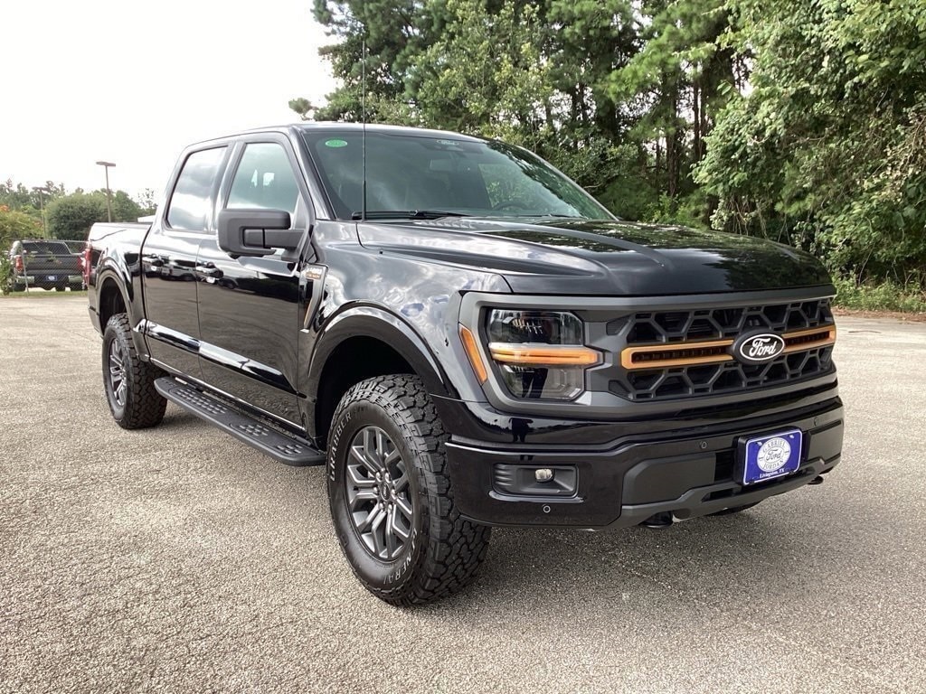 This 2025 Ford F-150 Tremor in Agate Black Metallic comes with the following features: 3.5L V6 EcoBoost 10-Speed Automatic 4WD 4WD Bed Utility Package (4 Pickup Box Tie-Down Plates, LED Box Lighting, and Power Tailgate), Equipment Group 401A Standard, GVWR: 7,100 lbs Payload Package, Mobile Office Package (Console Worksurface, Partitioned Lockable Rear Storage, and Wireless Charging), 4WD, 4-Wheel Disc Brakes, 8 Speakers, ABS brakes, Adjustable pedals, Air Conditioning, Alloy wheels, AM/FM radio: SiriusXM with 360L, Auto High-beam Headlights, Auto-dimming door mirrors, Auto-dimming Rear-View mirror, Automatic temperature control, Brake assist, Bumpers: body-color, Compass, Delay-off headlights, Driver door bin, Driver vanity mirror, Dual front impact airbags, Dual front side impact airbags, Electronic Locking w/3.73 Axle Ratio, Electronic Stability Control, Emergency communication system: SYNC 4 911 Assist, Front anti-roll bar, Front Bucket Seats, Front Center Armrest, Front dual zone A/C, Front fog lights, Front License Plate Bracket, Front reading lights, Front wheel independent suspension, Fully automatic headlights, Heated door mirrors, Heated front seats, Illuminated entry, Low tire pressure warning, Navigation system: Connected Navigation, Occupant sensing airbag, Outside temperature display, Overhead airbag, Overhead console, Panic alarm, Passenger door bin, Passenger vanity mirror, Power door mirrors, Power driver seat, Power passenger seat, Power steering, Power windows, Radio data system, Radio: B&O Sound System by Bang & Olufsen, Rear reading lights, Rear step bumper, Rear window defroster, Remote keyless entry, Security system, Speed control, Split folding rear seat, Steering wheel mounted audio controls, SYNC 4 w/Enhanced Voice Recognition, Tachometer, Tailgate Step w/Tailgate Work Surface, Telescoping steering wheel, Tilt steering wheel, Traction control, Trip computer, Turn signal indicator mirrors, Unique Sport Cloth 40/Console/40 Power Front Seat, Variably intermittent wipers, Voltmeter, and Wheels: 18" Alloy w/Dark Matte Finish.