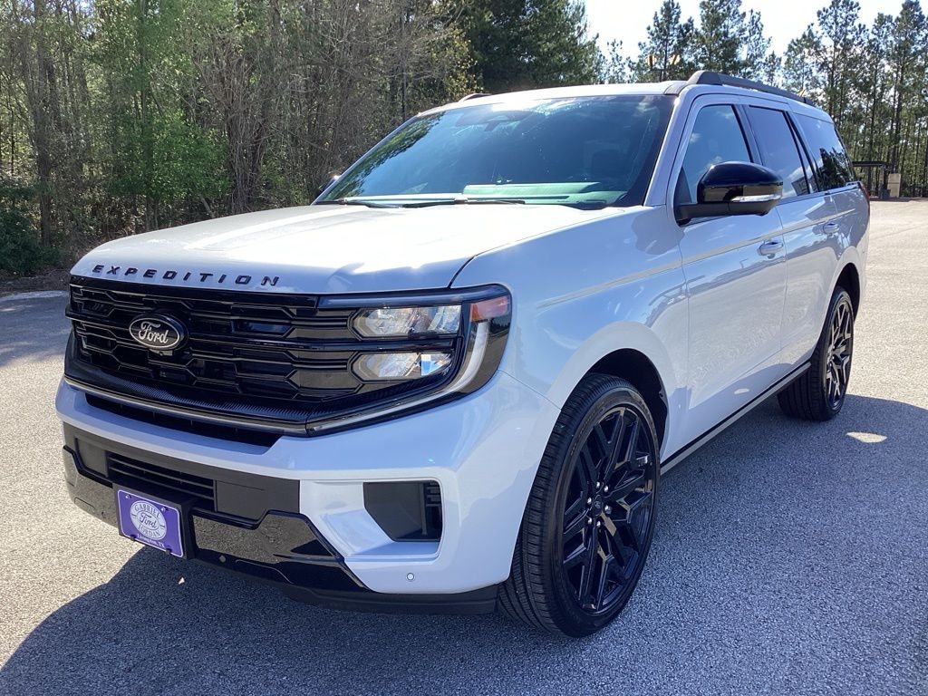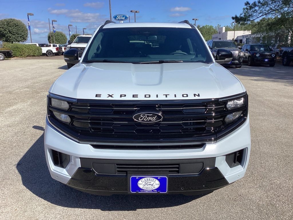 This 2026 Ford Expedition Platinum in Space Silver Metallic comes with the following features: 3.5L V6 EcoBoost High Output 10-Speed Automatic 4WD 4WD Driver's Package (Radio: B&O Play Unleashed and SiriusXM with 360L), Equipment Group 600A Standard Package (2nd Row Power-Folding Captain's Chairs, 3.73 Axle Ratio, BlueCruise Equipped (90-Day Trial), Ford Digital Experience, Heated and Ventilated Leather Front Captain's Chairs, Power Tilt/Telescopic Steering Wheel with Memory, Radio: B&O Sound System by Bang and Olufsen, and Wheels: 20" x 8.5" Ebony Bright Machined Aluminum), Ford Connectivity Package (1-Year Included), Stealth Appearance Package (Black Belt Molding, Black Expedition Lettering on Hood, Black Headlamp Bezel with Ebony Trim Applique, Black Platinum Badge on Tailgate, Black Roof Rails, Carbon Black Front Bumper/Fascia, Rear Side Windows Laminated Glass, and Signature Grille Lighting), Stealth Performance Package (Black Onyx Painted Power Deployable Running Boards, Engine Sound Enhancer, High Flow Exhaust System, and Wheels: 24" x 9.5" Ebony Painted Aluminum), 4WD, 10 Speakers, 3rd row seats: split-bench, 4-Wheel Disc Brakes, ABS brakes, Air Conditioning, Alloy wheels, AM/FM radio: SiriusXM with 360L, Apple CarPlay/Android Auto, Auto High-beam Headlights, Auto-dimming door mirrors, Auto-dimming Rear-View mirror, Automatic temperature control, Brake assist, Bumpers: body-color, Compass, Delay-off headlights, Driver door bin, Driver vanity mirror, Dual front impact airbags, Dual front side impact airbags, Electronic Stability Control, Emergency communication system: 911 Assist, Exterior Parking Camera Rear, Four wheel independent suspension, Front anti-roll bar, Front Bucket Seats, Front Center Armrest, Front dual zone A/C, Front License Plate Bracket, Front reading lights, Fully automatic headlights, Garage door transmitter, Genuine wood dashboard insert, Genuine wood door panel insert, Heated door mirrors, Heated front seats, Heated rear seats, Heated steering wheel, Illuminated entry, Intersection Assist, Leather steering wheel, Low tire pressure warning, Memory seat, Navigation System, Occupant sensing airbag, Outside temperature display, Overhead airbag, Overhead console, Panic alarm, Passenger door bin, Passenger vanity mirror, Power door mirrors, Power driver seat, Power moonroof: Vista Roof, Power passenger seat, Power steering, Power windows, Radio data system, Rain sensing wipers, Rear air conditioning, Rear anti-roll bar, Rear reading lights, Rear window defroster, Rear window wiper, Reclining 3rd row seat, Remote keyless entry, Security system, Speed control, Speed-sensing steering, Speed-Sensitive Wipers, Split folding rear seat, Spoiler, Steering wheel memory, Steering wheel mounted audio controls, Tachometer, Telescoping steering wheel, Tilt steering wheel, Traction control, Trip computer, Turn signal indicator mirrors, Variably intermittent wipers, Ventilated front seats, Voltmeter, and Wheels: 22" x 9.0" Ebony Bright Machined Face Aluminum.