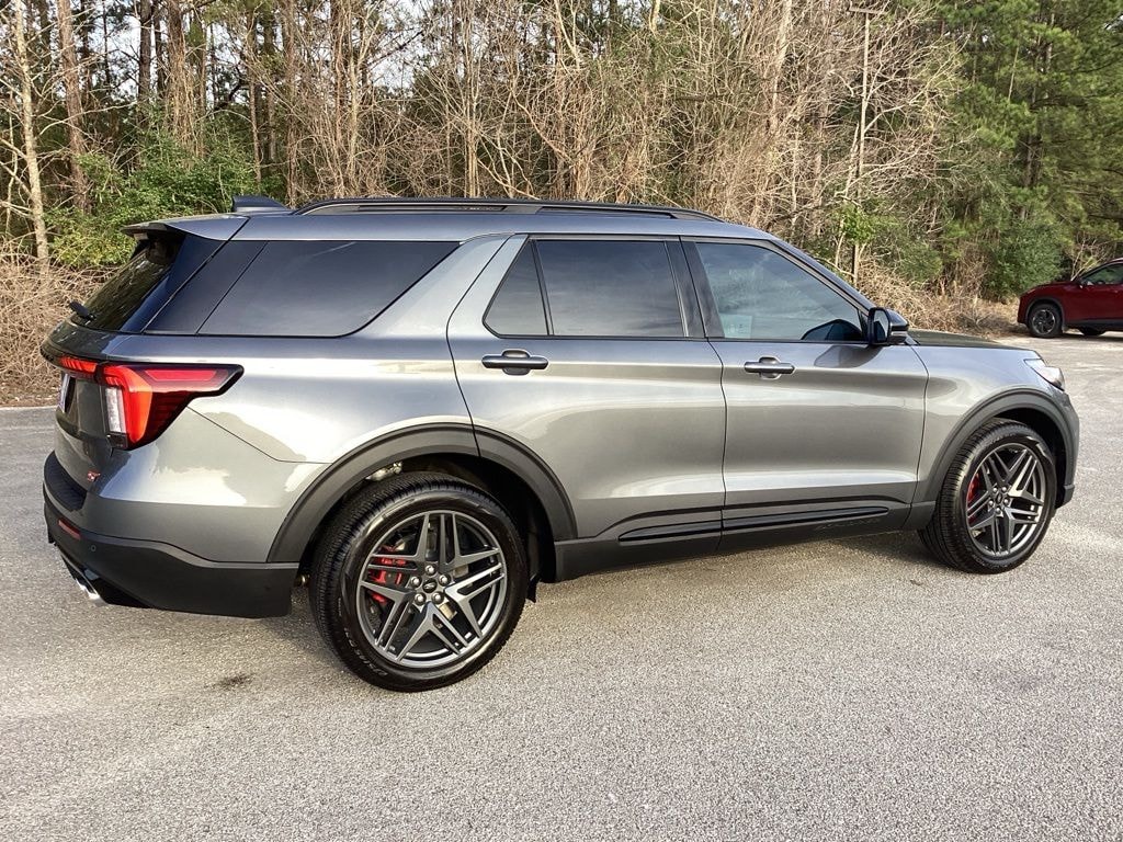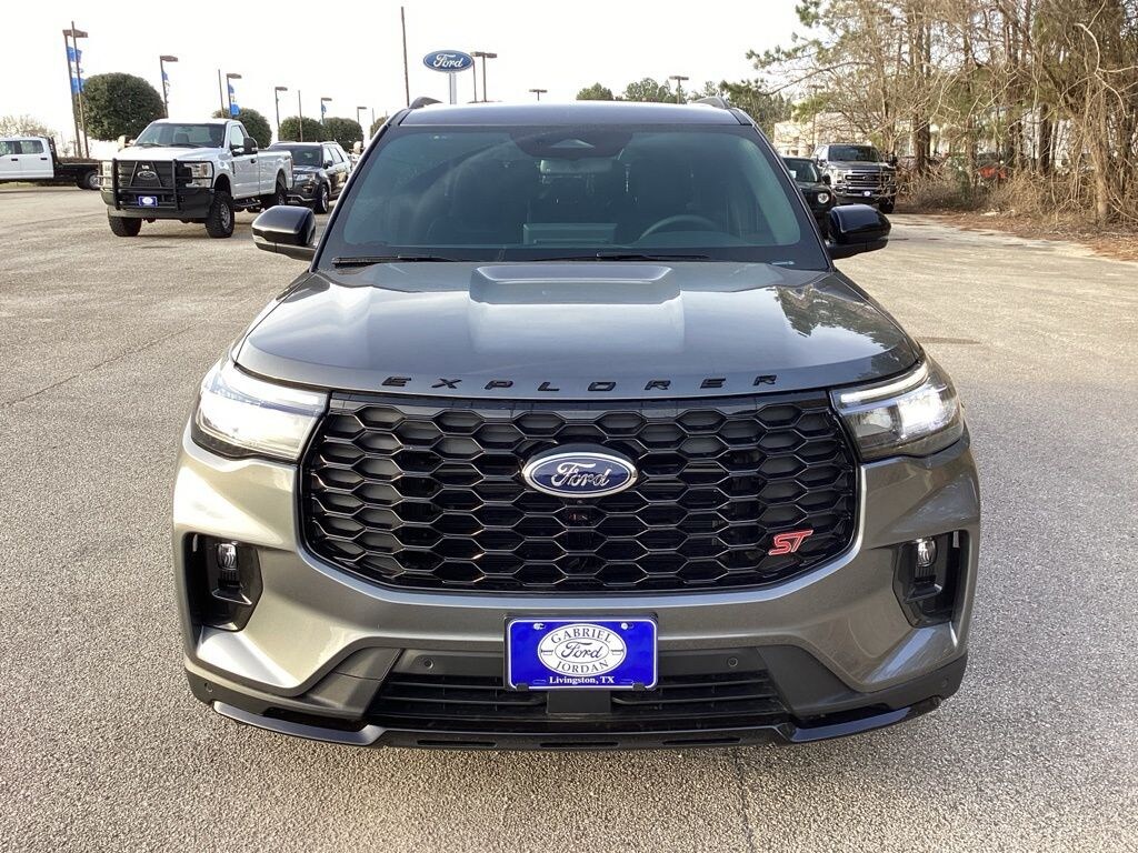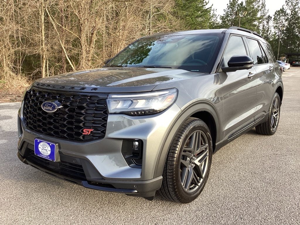 This 2026 Ford Explorer ST in Gray Metallic comes with the following features: 3.0L EcoBoost V6 10-Speed Automatic 4WD 4WD Equipment Group 400A Standard Package (Heated/Ventilated Miko Suede Captain's Chairs, Radio: B&O Sound System by Bang and Olufsen, and Wheels: 21" Magnetite-Painted Aluminum), Sun and Sound Package (Multicontour Seats with Front Active Motion, Panoramic Fixed Glass Roof with Power Shade, Radio: B&O Sound System by Bang & Olufsen, and Remote Control Front Windows), 4WD, 10 Speakers, 2nd Row 35/30/35 Bench with E-Z Entry and Armrest, 3rd row seats: bench, 4-Wheel Disc Brakes, ABS brakes, Air Conditioning, Alloy wheels, AM/FM radio: SiriusXM with 360L, Apple CarPlay/Android Auto, Auto High-beam Headlights, Auto-dimming door mirrors, Auto-dimming Rear-View mirror, Automatic temperature control, BlueCruise Equipped (1-Year + 90-Day Plan), Brake assist, Bumpers: body-color, Compass, Delay-off headlights, Driver door bin, Driver vanity mirror, Dual front impact airbags, Dual front side impact airbags, Electronic Stability Control, Emergency communication system: 911 Assist, Exterior Parking Camera Rear, Four wheel independent suspension, Front anti-roll bar, Front Bucket Seats, Front Center Armrest, Front dual zone A/C, Front fog lights, Front License Plate Bracket, Front reading lights, Fully automatic headlights, Garage door transmitter, Heated door mirrors, Heated front seats, Heated rear seats, Heated steering wheel, Illuminated entry, Knee airbag, Leather steering wheel, Low tire pressure warning, Memory seat, Navigation System, Occupant sensing airbag, Outside temperature display, Overhead airbag, Overhead console, Panic alarm, Passenger door bin, Passenger vanity mirror, Power door mirrors, Power driver seat, Power Liftgate, Power passenger seat, Power steering, Power windows, Rain sensing wipers, Rear air conditioning, Rear anti-roll bar, Rear reading lights, Rear window defroster, Rear window wiper, Remote keyless entry, Security system, Speed control, Speed-sensing steering, Speed-Sensitive Wipers, Split folding rear seat, Spoiler, Sport steering wheel, Steering wheel mounted audio controls, Tachometer, Telescoping steering wheel, Tilt steering wheel, Traction control, Trip computer, Turn signal indicator mirrors, Variably intermittent wipers, and Ventilated front seats. Price includes: $3500 - Retail Customer Cash. Exp. 03/31/2026