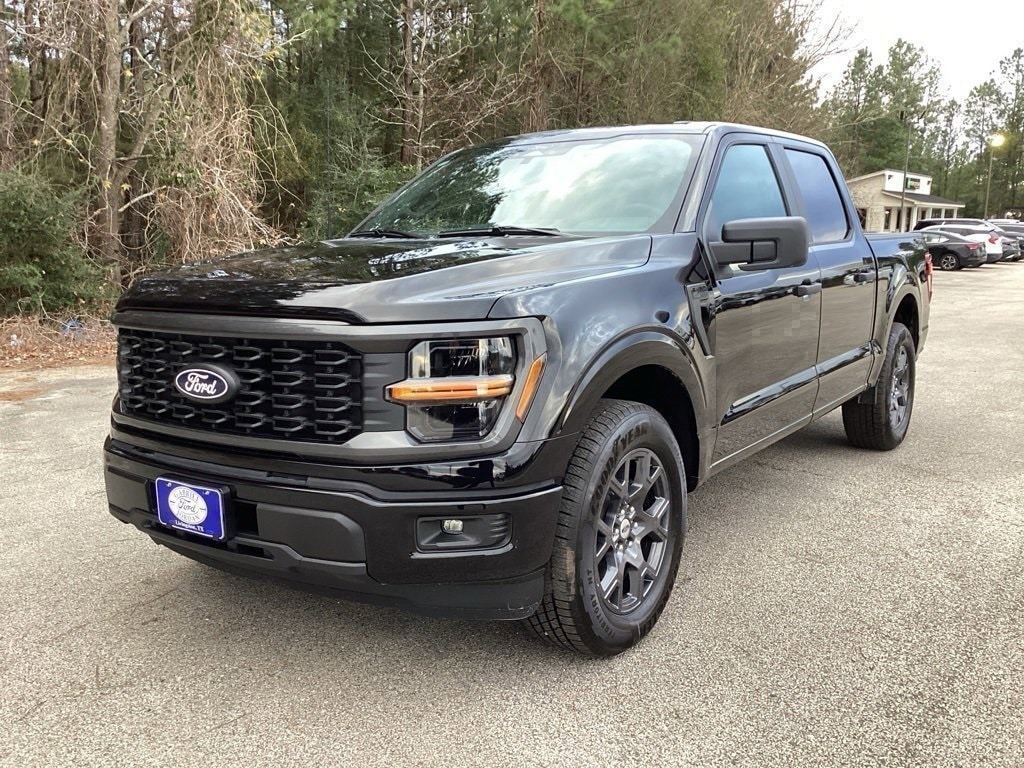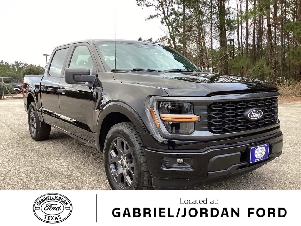 This 2026 Ford F-150 STX in Agate Black Metallic comes with the following features: 2.7L V6 EcoBoost 10-Speed Automatic RWD Equipment Group 200A Mid (12" Cluster Display, 3.55 Axle Ratio, LED Fog Lamps with LED Cornering Lamp, Radio: AM/FM Stereo with SiriusXM 360L, SYNC 4 with Enhanced Voice Recognition, Unique Sport Cloth 40/Console/40 Front-Seats, and Wheels: 20" Dark Gray Aluminum), Ford Connectivity Package (1-Year Included), GVWR: 6,426 lbs Payload Package, Internet access capable: 5G Modem - Ford Connectivity Package, 4-Wheel Disc Brakes, 6 Speakers, ABS brakes, Air Conditioning, Alloy wheels, AM/FM radio: SiriusXM with 360L, Auto High-beam Headlights, Brake assist, Bumpers: body-color, Compass, Delay-off headlights, Driver door bin, Dual front impact airbags, Dual front side impact airbags, Electronic Stability Control, Emergency communication system: SYNC 4 911 Assist, Front anti-roll bar, Front Bucket Seats, Front Center Armrest, Front License Plate Bracket, Front reading lights, Front wheel independent suspension, Fully automatic headlights, Heated door mirrors, Illuminated entry, Low tire pressure warning, Occupant sensing airbag, Outside temperature display, Overhead airbag, Overhead console, Panic alarm, Passenger door bin, Passenger vanity mirror, Power door mirrors, Power steering, Power windows, Radio data system, Rear Parking Sensors, Rear step bumper, Rear window defroster, Remote keyless entry, Security system, Speed control, Split folding rear seat, Steering wheel mounted audio controls, Tachometer, Telescoping steering wheel, Tilt steering wheel, Traction control, Trip computer, Variably intermittent wipers, and Wheels: 18" Gloss Black.