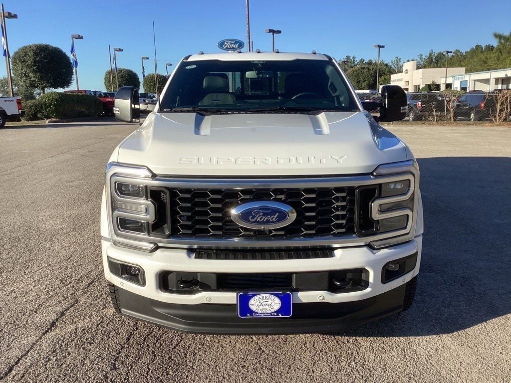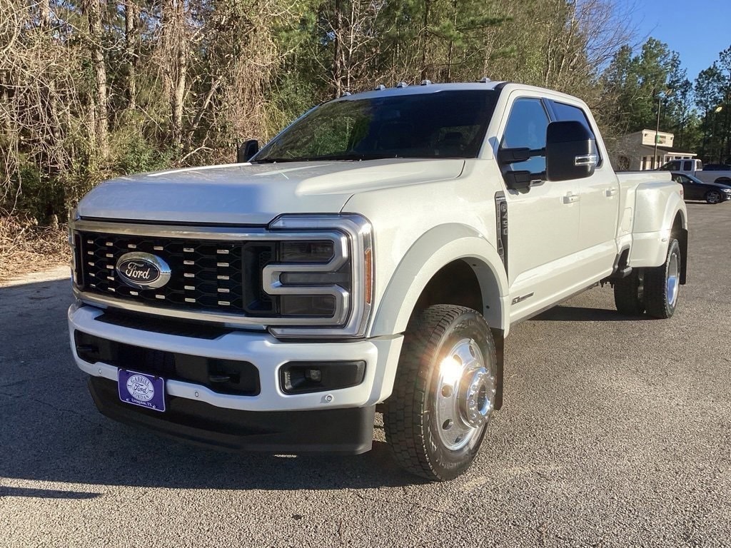 Recent Arrival! This 2026 Ford F-450SD Platinum DRW in Star White Metallic Tri-Coat comes with the following features: Power Stroke 6.7L V8 DI 32V OHV Turbodiesel 10-Speed Automatic 4WD 4WD Ford Connectivity Package (1-Year Included), FX4 Off-Road Package, GVWR: 14,000 lb Payload Package, Internet access capable: 5G Modem - Ford Connectivity Package, 4WD, 19.5" Forged Polished Aluminum Wheels, 4-Wheel Disc Brakes, ABS brakes, Adjustable pedals, Air Conditioning, Alloy wheels, AM/FM radio: SiriusXM with 360L, Auto High-beam Headlights, Auto-dimming Rear-View mirror, Automatic temperature control, Brake assist, Compass, Delay-off headlights, Driver door bin, Driver vanity mirror, Dual front impact airbags, Dual front side impact airbags, Dual rear wheels, Electronic Stability Control, Emergency communication system: SYNC 4 911 Assist, Engine Block Heater, Flow-Through Console, Front anti-roll bar, Front Bucket Seats, Front Center Armrest, Front dual zone A/C, Front fog lights, Front License Plate Bracket, Front reading lights, Fully automatic headlights, Garage door transmitter, Heated door mirrors, Heated front seats, Heated rear seats, Heated steering wheel, Illuminated entry, Limited Slip w/4.30 Axle Ratio, Low tire pressure warning, Memory seat, Navigation system: Connected Navigation, Outside temperature display, Overhead airbag, Overhead console, Panic alarm, Passenger door bin, Passenger vanity mirror, Pedal memory, Power door mirrors, Power driver seat, Power passenger seat, Power steering, Power windows, Pro Power Onboard - 2kW, Radio: B&O Unleashed Sound System by Bang & Olufsen, Rain sensing wipers, Rapid-Heat Supplemental Cab Heater, Rear anti-roll bar, Rear reading lights, Rear seat center armrest, Rear step bumper, Rear window defroster, Remote keyless entry, Security system, SiriusXM w/360L, Speed control, Split folding rear seat, Steering wheel mounted audio controls, SYNC 4 w/Enhanced Voice Recognition, Tachometer, Telescoping steering wheel, Tilt steering wheel, Traction control, Trip computer, Turn signal indicator mirrors, Twin Panel Power Moonroof, Upfitter Switches (6), Variably intermittent wipers, and Ventilated front seats.