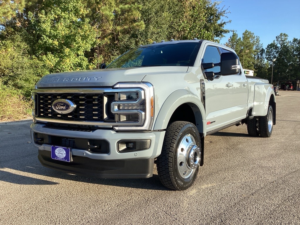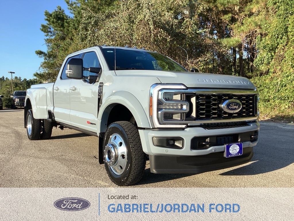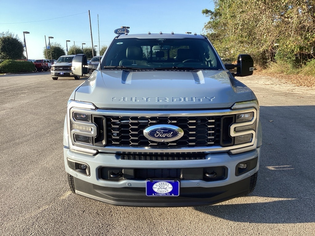 Recent Arrival! This 2026 Ford F-450SD Platinum DRW in Glacier Gray Metallic Tri-Coat comes with the following features: 6.7L High Output Power Stroke V8 Diesel 10-Speed Automatic 4WD 4WD Ford Connectivity Package (1-Year Included), FX4 Off-Road Package, GVWR: 14,000 lb Payload Package, Internet access capable: 5G Modem - Ford Connectivity Package, 4WD, 19.5" Forged Polished Aluminum Wheels, 4-Wheel Disc Brakes, ABS brakes, Air Conditioning, Alloy wheels, Brake assist, Compass, Delay-off headlights, Dual front impact airbags, Dual front side impact airbags, Dual rear wheels, Electronic Stability Control, Emergency communication system: SYNC 4 911 Assist, Engine Block Heater, Front anti-roll bar, Front reading lights, Fully automatic headlights, Heated door mirrors, Illuminated entry, Limited Slip w/4.30 Axle Ratio, Low tire pressure warning, Outside temperature display, Overhead airbag, Overhead console, Panic alarm, Passenger vanity mirror, Power door mirrors, Power steering, Power windows, Pro Power Onboard - 2kW, Rapid-Heat Supplemental Cab Heater, Rear anti-roll bar, Rear reading lights, Rear step bumper, Remote keyless entry, Security system, Speed control, Split folding rear seat, Steering wheel mounted audio controls, Tachometer, Telescoping steering wheel, Tilt steering wheel, Traction control, Trip computer, Turn signal indicator mirrors, Upfitter Switches (6), and Variably intermittent wipers.