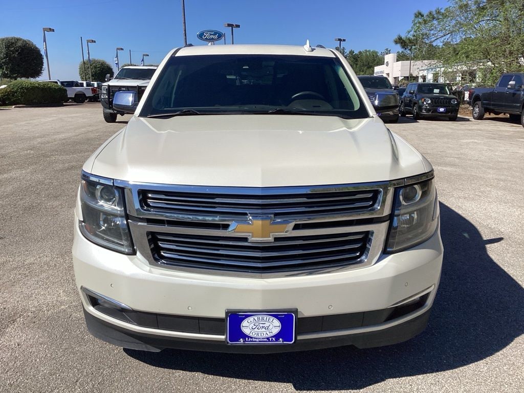 Recent Arrival! This 2015 Chevrolet Tahoe LTZ in White Diamond Tricoat comes with the following features: EcoTec3 5.3L V8 6-Speed Automatic Electronic with Overdrive RWD Cocoa/Mahogany Leather License Plate Front Mounting Package, Magnetic Ride Control Suspension Package, Preferred Equipment Group 1LZ (3rd Row 60/40 Power Fold Split-Bench, 5 12-Volt Auxiliary Power Outlets, Auto-Dimming Inside Rear-View Mirror, Bose Centerpoint Premium 10-Speaker Surround Sound, Driver Inboard & Front Passenger Airbags, Floor Console, Fog Lamps, Forward Collision Alert, Front & Rear Parking Assist, Hands Free Power Liftgate, Heated 2nd Row Seats, Heated Leather Wrapped Steering Wheel, Heavy-Duty Rear Locking Differential, Keyless Start Switch, Lane Departure Warning & Safety Alert Seat, Memory Settings, Passive Entry System, Power Adjustable Pedals, Power Release 2nd Row Bucket Seats, Power Tilt & Telescoping Steering Column, Power-Folding Heated Outside Mirrors, Rear Cross-Traffic Alert, Remote Keyless Entry, Side Blind Zone Alert w/Lane Change Alert, Universal Home Remote, and Wireless Charging), Cocoa/Mahogany Leather, 10 Speakers, 2nd Row Pwr Release 60/40 Split Folding Bench Seat, 3.08 Rear Axle Ratio, 3rd row seats: split-bench, 4-Wheel Disc Brakes, ABS brakes, Adaptive suspension, Adjustable pedals, Air Conditioning, Alloy wheels, AM/FM radio: SiriusXM, Auto-dimming door mirrors, Auto-dimming Rear-View mirror, Automatic temperature control, Bluetooth® For Phone, Bodyside moldings, Brake assist, Bumpers: body-color, CD player, Compass, Delay-off headlights, Driver door bin, Driver vanity mirror, Dual front impact airbags, Dual front side impact airbags, Electronic Stability Control, Emergency communication system: OnStar Directions & Connections, Exterior Parking Camera Rear, Front anti-roll bar, Front Bucket Seats, Front Center Armrest, Front dual zone A/C, Front fog lights, Front Heated Reclining Bucket Seats, Front reading lights, Front wheel independent suspension, Fully automatic headlights, Garage door transmitter, Heated & Cooled Driver & Front Passenger Seats, Heated door mirrors, Heated front seats, Heated rear seats, Heated steering wheel, High-Intensity Discharge Headlights, Illuminated entry, Low tire pressure warning, Memory seat, Navigation System, Occupant sensing airbag, Outside temperature display, Overhead airbag, Overhead console, Panic alarm, Passenger door bin, Passenger vanity mirror, Pedal memory, Perforated Leather-Appointed Seat Trim, Power door mirrors, Power driver seat, Power Liftgate, Power passenger seat, Power steering, Power windows, Premium audio system: Chevrolet MyLink, Radio: Chevrolet MyLink w/Navigation/AM/FM Stereo, Rain sensing wipers, Rear air conditioning, Rear anti-roll bar, Rear reading lights, Rear window defroster, Rear window wiper, Remote keyless entry, Roof rack: rails only, Security system, Single-Slot CD/MP3 Player, SiriusXM Satellite Radio, Speed control, Speed-sensing steering, Split folding rear seat, Spoiler, Steering wheel memory, Steering wheel mounted audio controls, Tachometer, Telescoping steering wheel, Tilt steering wheel, Traction control, Trip computer, Turn signal indicator mirrors, Variably intermittent wipers, Ventilated front seats, Voltmeter, and Wheels: 20" x 9" Polished-Aluminum.