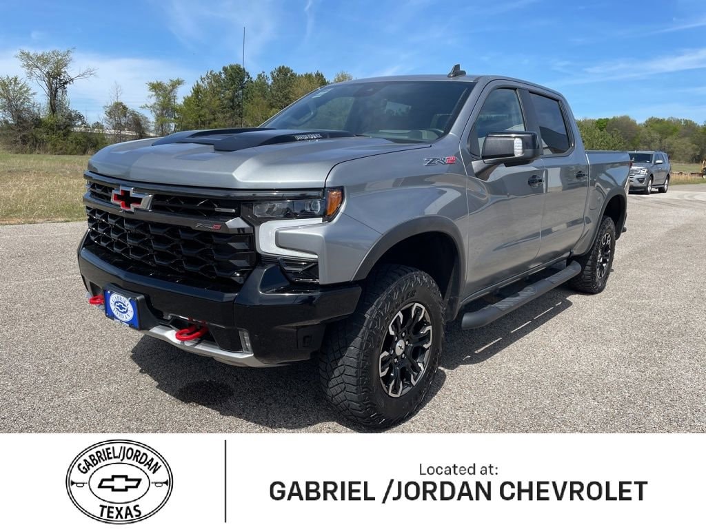 This 2024 Chevrolet Silverado 1500 ZR2 in Sterling Gray Metallic comes with the following features: 3.0L I6 10-Speed Automatic 4WD 10-Speed Automatic, 4WD, and Jet Black/Graystone Leather Preferred Equipment Group 3LT (10-Way Power Driver Seat w/Lumbar, 10-Way Power Passenger Seat Adjuster w/Lumbar, 12.3 Multicolor Reconfigurable Digital Display, 120-Volt Bed Mounted Power Outlet, 120-Volt Interior Power Outlet, 2 USB Data Ports, 2nd Row Heated Outboard Seats, All-Weather Floor Liner (LPO), Auto-Dimming Inside Rear-View Mirror, Bed View Camera, Bluetooth® For Phone, Chevrolet Connected Access Capable, Chevytec Spray-On Black Bedliner, Color-Keyed Carpeting Floor Covering, Deep-Tinted Glass, Driver Memory, Dual Rear USB Ports (Charge Only), Electric Rear-Window Defogger, Electrical Steering Column Lock, Electronic Cruise Control, EZ Lift Power Lock & Release Tailgate, Floor Mounted Center Console, Front LED Fog Lamps, Front Rain-Sensing Wipers, HD Surround Vision, Heated Driver & Front Outboard Passenger Seats, Heated Steering Wheel, Heavy-Duty Air Filter, High Gloss Black Mirror Caps, Hill Descent Control, Hitch Guidance w/Hitch View, In-Vehicle Trailering System App, Integrated Trailer Brake Controller, Keyless Open & Start, LED Cargo Area Lighting, Manual Tilt/Telescoping Steering Column, OnStar & Chevrolet Connected Services Capable, Outside Heated Power-Adjustable Mirrors, Performance Red Recovery Hooks, Perimeter Lighting, Power Front Passenger Windows w/Express Up/Down, Power Front Windows w/Driver Express Up/Down, Power Rear Windows w/Express Down, Power Sliding Rear Window w/Rear Defogger, Rear Cross Traffic Braking, Rear Park Assist, Rear Pedestrian Alert, Rear Wheelhouse Liners, Remote Vehicle Starter System, Safety Alert Seat, SiriusXM w/360L, Standard Tailgate, Steering Wheel Audio Controls, Theft Deterrent System (Unauthorized Entry), Trailer Camera Provisions, Trailer Side Blind Zone Alert, Universal Home Remote, Ventilated Driver & Front Passenger Seats, Wi-Fi Hot Spot Capable, and Wrapped Steering Wheel), Technology Package (15 Diagonal Multicolor Head-Up Display, Adaptive Cruise Control, Power Tilt & Telescoping Steering Column, and Rear Camera Mirror), Trailering Package (Hitch Guidance), Up-Level Rear Seat w/Storage Package, ZR2 Suspension Package, 10-Speed Automatic, 4WD, Jet Black/Graystone Leather, 220 Amp Alternator, 3.23 Rear Axle Ratio, 4-Wheel Disc Brakes, 4 Black Round Assist Steps (LPO), 7 Speakers, 850 Cold-Cranking Amps Heavy-Duty Battery, ABS brakes, Air Conditioning, Alloy wheels, AM/FM radio: SiriusXM with 360L, Auto High-beam Headlights, Auto-dimming door mirrors, Auto-dimming Rear-View mirror, Automatic Emergency Braking, Automatic temperature control, Block heater, Brake assist, Compass, Delay-off headlights, Driver door bin, Driver vanity mirror, Dual Exhaust, Dual front impact airbags, Dual front side impact airbags, Electronic Stability Control, Electronic Transmission Range Selector Shifter, Engine Block Heater, Following Distance Indicator, Forward Collision Alert, Front anti-roll bar, Front Bucket Seats, Front Center Armrest, Front dual zone A/C, Front fog lights, Front License Plate Kit, Front Pedestrian Braking, Front reading lights, Front wheel independent suspension, Fully automatic headlights, Garage door transmitter, Heated door mirrors, Heated front seats, Heated rear seats, Heated steering wheel, Illuminated entry, IntelliBeam Automatic High Beam On/Off, Lane Keep Assist w/Lane Departure Warning, Low tire pressure warning, Memory seat, Occupant sensing airbag, Outside temperature display, Overhead airbag, Overhead console, Panic alarm, Passenger door bin, Passenger vanity mirror, Perforated Leather Seat Trim, Power door mirrors, Power driver seat, Power passenger seat, Power steering, Power windows, Premium audio system: Chevrolet Infotainment 3 Premium, Premium Bose 7-Speaker Sound System, Radio data system, Radio: Chevrolet In