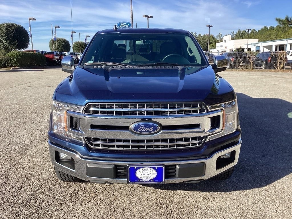 This 2020 Ford F-150 XLT in Blue comes with the following features: 5.0L V8 10-Speed Automatic RWD Equipment Group 302A Luxury (4.2" Productivity Screen in Instrument Cluster, Auto-Dimming Rear-View Mirror, Cloth 40/20/40 Front Seat, Fixed Backlight w/Privacy Glass, Heated Front Seats, Leather-Wrapped Steering Wheel, Power Glass Heated Sideview Mirrors, Power-Adjustable Pedals, Rear Under-Seat Storage, Rear Window Defroster, and SiriusXM Radio), XLT Chrome Appearance Package (2-Bar Style Grille w/Chrome 2 Minor Bars, Chrome Door & Tailgate Handles w/Body-Color Bezel, Chrome Step Bars, Single-Tip Chrome Exhaust, and Wheels: 18" Chrome-Like PVD), XLT Power Equipment Group (LED Box Lighting and Power-Sliding Rear Window), 110V/400W Outlet, 4-Wheel Disc Brakes, 6 Speakers, 8-Way Power Driver Seat, ABS brakes, Air Conditioning, Alloy wheels, AM/FM radio, Auto High-beam Headlights, Brake assist, Bumpers: chrome, Class IV Trailer Hitch Receiver, Compass, Delay-off headlights, Driver door bin, Driver vanity mirror, Dual front impact airbags, Dual front side impact airbags, Electronic Stability Control, Emergency communication system: SYNC 3 911 Assist, Exterior Parking Camera Rear, Front anti-roll bar, Front Center Armrest w/Storage, Front fog lights, Front License Plate Bracket, Front wheel independent suspension, Fully automatic headlights, Illuminated entry, Low tire pressure warning, Occupant sensing airbag, Outside temperature display, Overhead airbag, Panic alarm, Passenger door bin, Passenger vanity mirror, Power door mirrors, Power steering, Power windows, Radio data system, Radio: AM/FM Stereo w/6 Speakers, Rear step bumper, Remote keyless entry, Remote Start System, Reverse Sensing System, Security system, Speed control, Speed-sensing steering, Split folding rear seat, Steering wheel mounted audio controls, SYNC 3, Tachometer, Telescoping steering wheel, Tilt steering wheel, Traction control, Variably intermittent wipers, Voice-Activated Touchscreen Navigation, Voltmeter, and Wheels: 17" Silver Painted Aluminum.