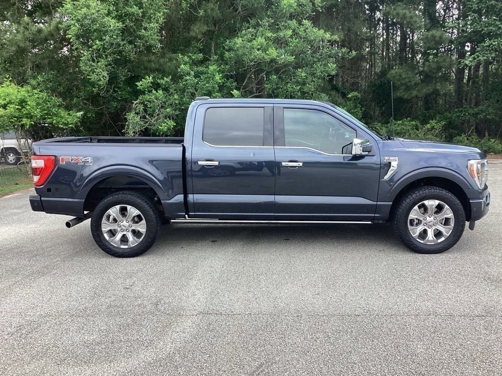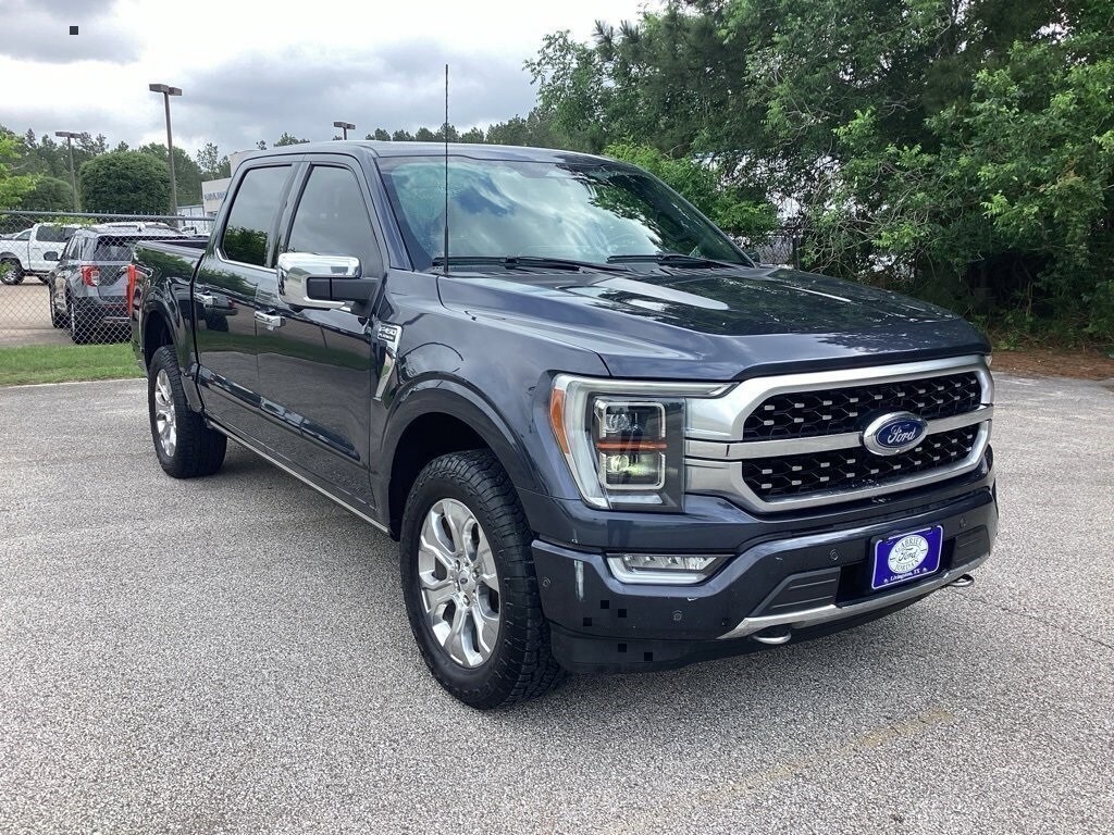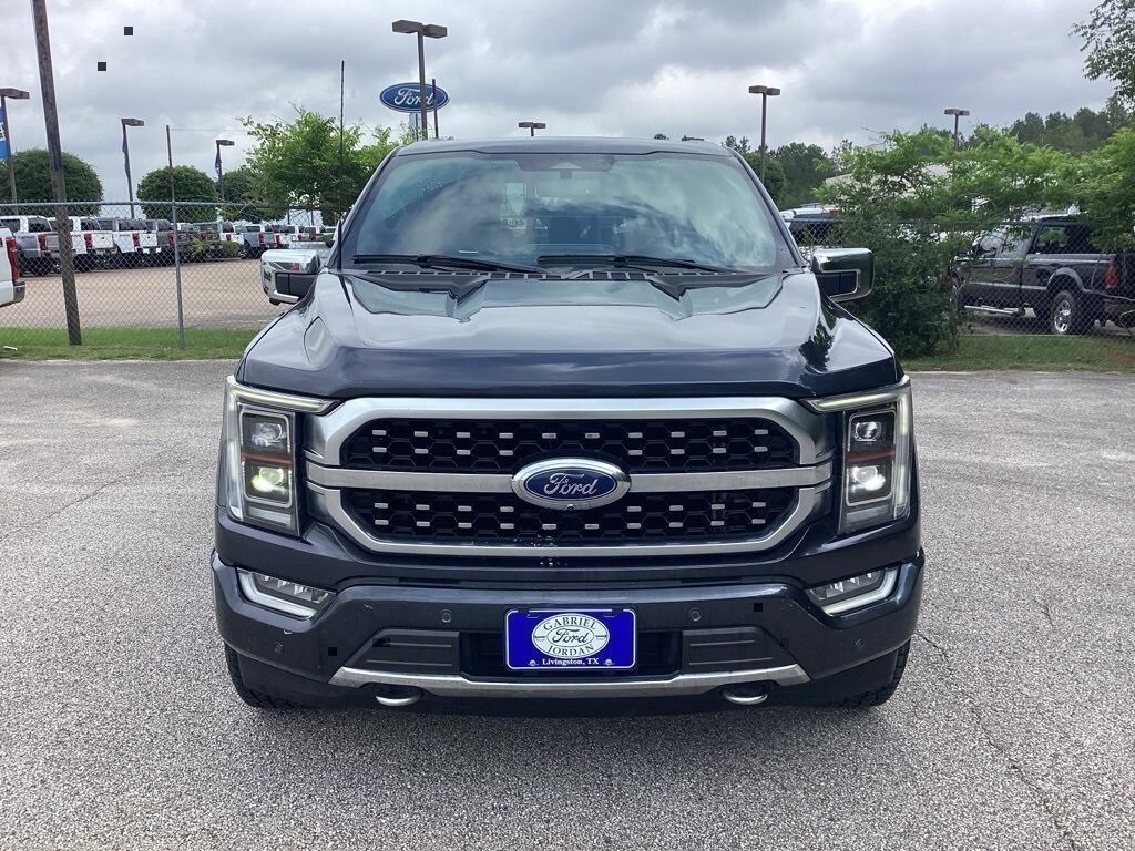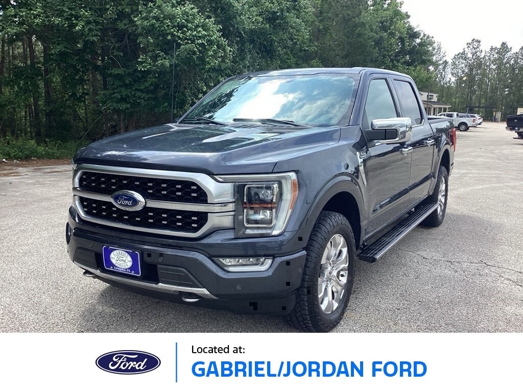 This 2022 Ford F-150 Platinum in Quartz Metallic comes with the following features: 3.5L V6 EcoBoost 10-Speed Automatic 4WD 4WD Equipment Group 701A High, FX4 Off-Road Package (4x4 FX4 Off-Road Bodyside Decal, Electronic Locking w/3.31 Axle Ratio, Hill Descent Control, Off-Road Tuned Front Shock Absorbers, Rock Crawl Mode, and Tray Style Floor Liner), Trailer Tow Package (Class IV Trailer Hitch Receiver and Integrated Trailer Brake Controller), 4WD, 20" Polished Aluminum Wheels, 3.31 Axle Ratio, 4-Wheel Disc Brakes, 8 Speakers, ABS brakes, Active Park Assist 2.0 Removal, Adjustable pedals, Air Conditioning, Alloy wheels, AM/FM radio: SiriusXM with 360L, Auto High-beam Headlights, Auto Start-Stop Removal, Auto tilt-away steering wheel, Auto-dimming door mirrors, Auto-dimming Rear-View mirror, Automatic temperature control, Brake assist, Bumpers: body-color, Compass, Delay-off headlights, Driver door bin, Driver vanity mirror, Dual front impact airbags, Dual front side impact airbags, Electronic Stability Control, Emergency communication system: SYNC 4 911 Assist, Extended Range 36 Gallon Fuel Tank, Exterior Parking Camera Rear, Front anti-roll bar, Front Bucket Seats, Front Center Armrest, Front dual zone A/C, Front fog lights, Front License Plate Bracket, Front reading lights, Front wheel independent suspension, Fully automatic headlights, Garage door transmitter, Heated door mirrors, Heated front seats, Heated rear seats, Heated steering wheel, Illuminated entry, Low tire pressure warning, Memory seat, Multicontour Seats w/Active Motion Removal, Occupant sensing airbag, Outside temperature display, Overhead airbag, Overhead console, Panic alarm, Passenger door bin, Passenger vanity mirror, Pedal memory, Power door mirrors, Power driver seat, Power passenger seat, Power steering, Power windows, Radio data system, Radio: B&O Sound System by Bang & Olufsen, Rain sensing wipers, Rear reading lights, Rear seat center armrest, Rear step bumper, Rear window defroster, Remote keyless entry, Security system, Speed control, Speed-sensing steering, Split folding rear seat, Steering wheel memory, Steering wheel mounted audio controls, SYNC 4 w/Enhanced Voice Recognition, Tachometer, Telescoping steering wheel, Tilt steering wheel, Traction control, Trip computer, Turn signal indicator mirrors, Twin Panel Moonroof, Variably intermittent wipers, Ventilated front seats, and Voltmeter.