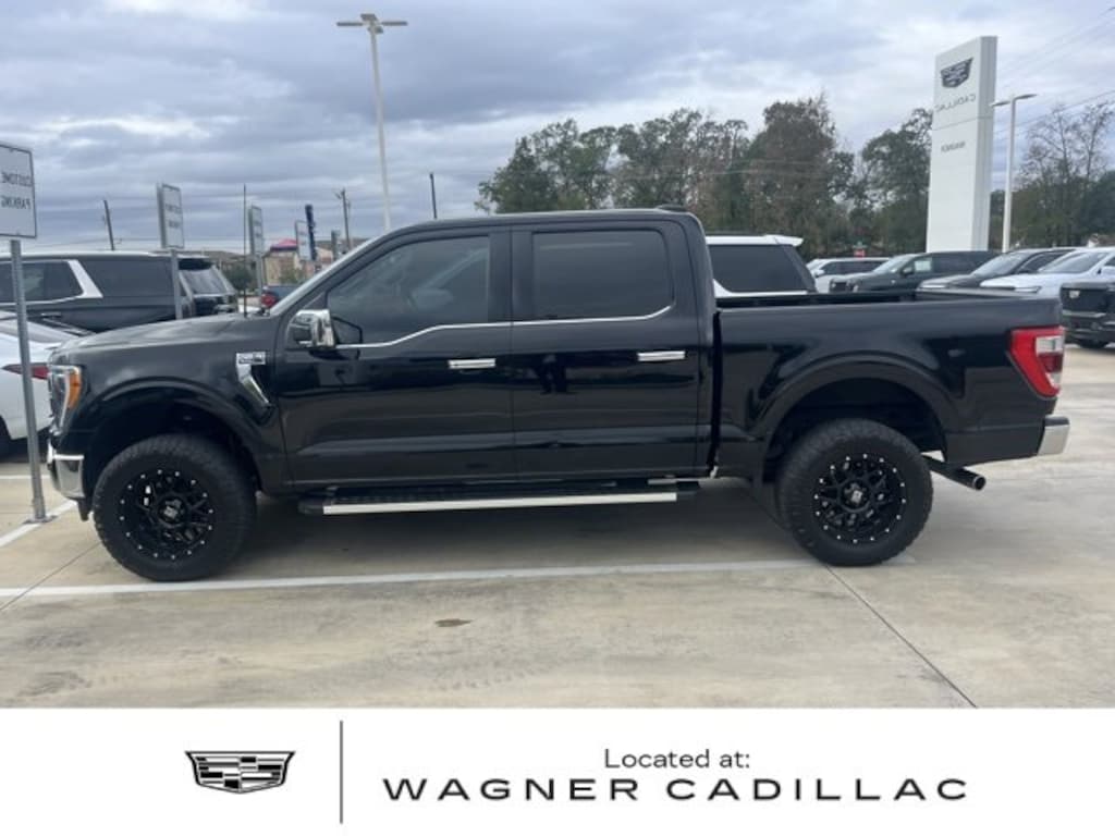 This 2023 Ford F-150 Lariat in Agate Black Metallic comes with the following features: 3.5L V6 EcoBoost 10-Speed Automatic 4WD 4WD Equipment Group 501A Standard, FX4 Off-Road Package, Trailer Tow Package (Class IV Trailer Hitch Receiver, Integrated Trailer Brake Controller, and Pro Trailer Backup Assist & Pro Trailer Hitch Assist), 4WD, 360 Degree Camera, 4-Wheel Disc Brakes, 8 Speakers, ABS brakes, Adjustable pedals, Air Conditioning, Alloy wheels, AM/FM radio: SiriusXM with 360L, Auto High-beam Headlights, Auto-dimming door mirrors, Auto-dimming Rear-View mirror, Automatic temperature control, Brake assist, Bumpers: chrome, Center High-Mounted Stop Lamp CHMSL Camera Removal, Chrome wheels, Compass, Delay-off headlights, Driver door bin, Driver vanity mirror, Dual front impact airbags, Dual front side impact airbags, Electronic Stability Control, Emergency communication system: SYNC 4 911 Assist, Extended Range 36 Gallon Fuel Tank, Exterior Parking Camera Rear, Front anti-roll bar, Front Bucket Seats, Front Center Armrest, Front dual zone A/C, Front fog lights, Front reading lights, Front wheel independent suspension, Fully automatic headlights, Garage door transmitter, Heated door mirrors, Heated front seats, Heated steering wheel, Illuminated entry, Inclination/Intrusion Sensor Removal, Leather-Trimmed Bucket Seats, LED Sideview Mirror Spotlights, Low tire pressure warning, Memory seat, Occupant sensing airbag, Outside temperature display, Overhead airbag, Overhead console, Panic alarm, Passenger door bin, Passenger vanity mirror, Pedal memory, Power door mirrors, Power driver seat, Power passenger seat, Power steering, Power windows, Radio data system, Radio: B&O Sound System by Bang & Olufsen, Rear reading lights, Rear seat center armrest, Rear step bumper, Rear window defroster, Remote keyless entry, Security system, Speed control, Speed-sensing steering, Split folding rear seat, Steering wheel mounted audio controls, SYNC 4 w/Enhanced Voice Recognition, Tachometer, Telescoping steering wheel, Tilt steering wheel, Traction control, Tray Style Floor Liner (47W), Trip computer, Turn signal indicator mirrors, Variably intermittent wipers, Ventilated front seats, Voltmeter, Wheels: 18 Chrome-Like PVD, and Wireless Charging Pad.