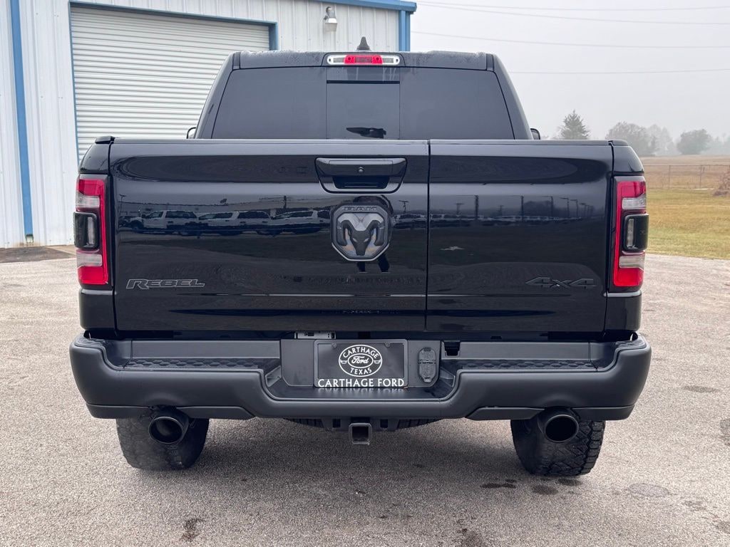 New Price! This 2020 Ram 1500 Rebel in Diamond Black Crystal Pearlcoat comes with the following features: HEMI 5.7L V8 Multi Displacement VVT 8-Speed Automatic 4WD Bed Utility Group (4 Adjustable Cargo Tie-Down Hooks, Deployable Bed Step, and Pick-Up Box Lighting), Black Appearance Package (Black 4x4 Tailgate Badge, Black Exterior Truck Badging, Black Front Bumper w/Black Plate, Black Headlamp Bezels, Black Outline Mustache Grille Texture 3, Body Color Door Handles, RAM Grille Badge - Black, and Wheels: 18" x 8.0" Gloss Black), Quick Order Package 27W Rebel, Rebel Level 1 Equipment Group (Auto-Dimming Rear-View Mirror, Black Premium Power Mirrors, Foam Bottle Insert (Door Trim Panel), Heated Front Seats, Heated Steering Wheel, Power Adjustable Pedals, Radio: Uconnect 4 w/8.4" Display, Rear Dome w/On/Off Switch Lamp, Rear Window Defroster, Single Disc Remote CD Player, Sun Visors w/Illuminated Vanity Mirrors, and Universal Garage Door Opener), Trailer Tow Group (Black Trailer Tow Power Mirrors and Trailer Brake Control), 1-Yr SiriusXM Guardian Trial, 12" Touchscreen Display, 3.92 Rear Axle Ratio, 4 Way Front Headrests, 4-Wheel Disc Brakes, 48V Belt Starter Generator, 4G LTE Wi-Fi Hot Spot, 5-Year SiriusXM Traffic Service, 5-Year SiriusXM Travel Link Service, 6 Speakers, 9 Amplified Speakers w/Subwoofer, ABS brakes, Air Conditioning, Alloy wheels, AM/FM radio: SiriusXM, Apple CarPlay, Brake assist, Bucket Seats, Cloth/Vinyl Low Back Bucket Seats, Compass, Delay-off headlights, Disassociated Touchscreen Display, Driver door bin, Dual front impact airbags, Dual front side impact airbags, Electronic Stability Control, For Details, Visit DriveUconnect.com, Front anti-roll bar, Front Bucket Seats, Front Center Armrest w/Storage, Front fog lights, Front reading lights, Front Seat Back Map Pockets, Front wheel independent suspension, Full Length Upgraded Floor Console, Fully automatic headlights, Google Android Auto, GPS Antenna Input, GPS Navigation, HD Radio, Heated door mirrors, Illuminated entry, Integrated Center Stack Radio, Leather steering wheel, LED Footwell Lighting, Low tire pressure warning, Multi-Function Tailgate, Occupant sensing airbag, Outside temperature display, Overhead airbag, Overhead console, Panic alarm, ParkView Rear Back-Up Camera, Passenger door bin, Passenger vanity mirror, Power 4-Way Driver Lumbar Adjust, Power door mirrors, Power driver seat, Power steering, Power windows, Radio data system, Radio: Uconnect 12 w/Navigation, Radio: Uconnect 3 w/5" Display, RAMs Head Badge, Rear 60/40 Folding Seat, Rear anti-roll bar, Rear seat center armrest, Rear step bumper, Remote keyless entry, Remote Start System, SiriusXM Satellite Radio, SiriusXM Traffic Plus, SiriusXM Travel Link, SiriusXM w/360L, Speed control, Split folding rear seat, Spray In Bedliner, Steering wheel mounted audio controls, Tachometer, Telescoping steering wheel, Tilt steering wheel, Traction control, Trip computer, USB Host Flip, Variably intermittent wipers, Voltmeter, and Wheels: 18" x 8" Painted BlacK.